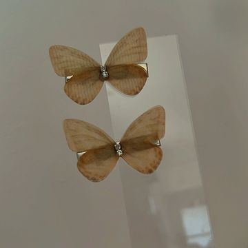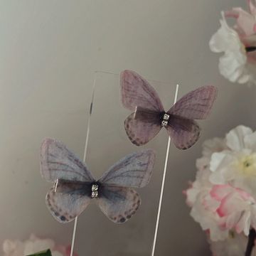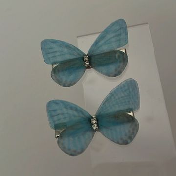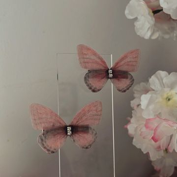 Soft silk and rhinestone butterfly decor on a 3mm hair clip. (2pk)